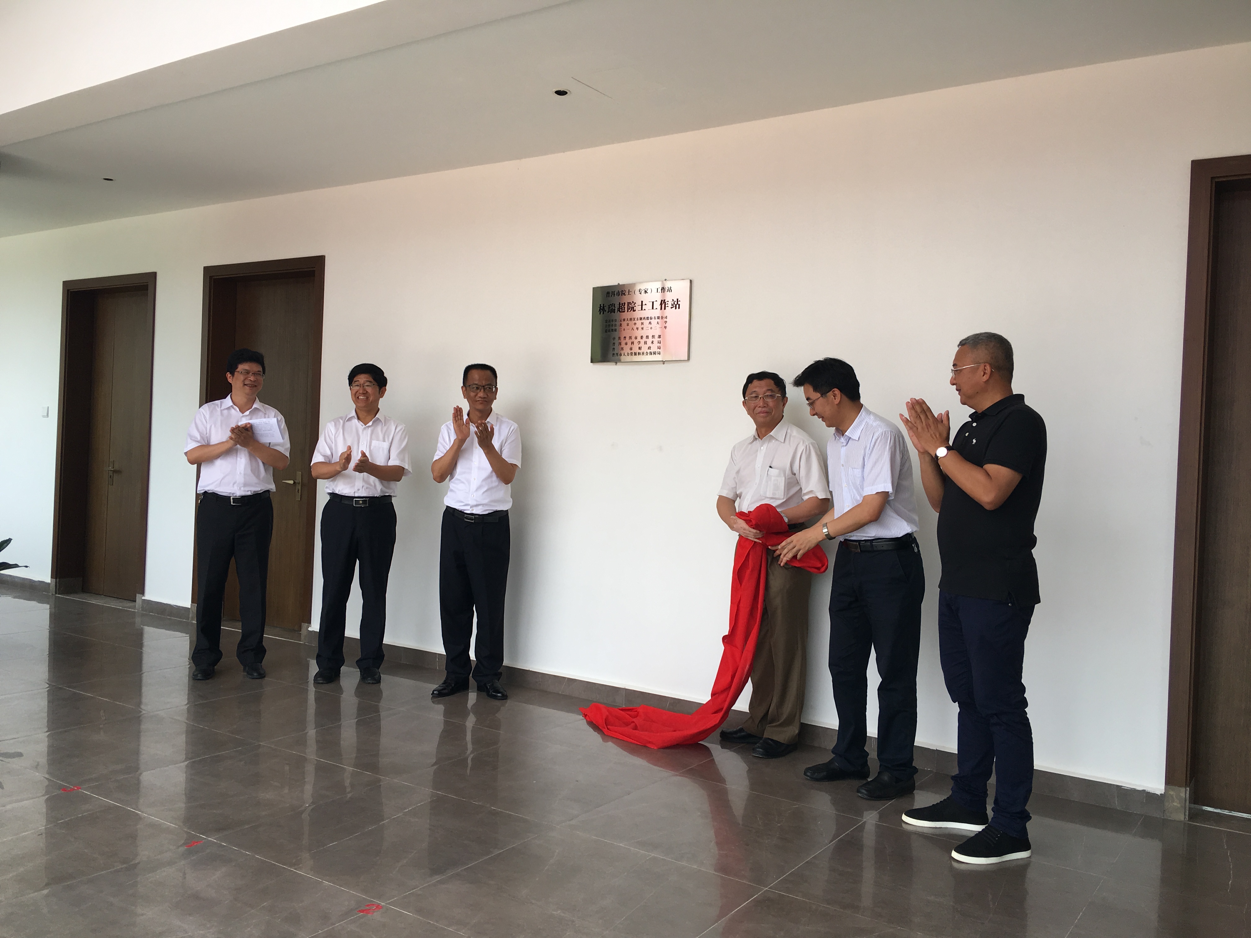 2018年7月25日上午,林瑞超院士工作站在云南大唐汉方制药股份有限公司举行揭牌仪式。市委书记卫星与北京中医大学中药品质评价北京市重点实验室主任、中国药典委员会执行委员、世界卫生组织传统医学顾问、法国国家药学科学院外籍院士林瑞超为进一步优化我市科技成果转化环境,加快推动科技成果转化为现实生产力进行交流讨论,并共同为林瑞超院士工作站揭牌。市委副书记、思茅区委书记陆平出席仪式并致辞,市委常委、市委秘书长罗永斌参加仪式,市委常委、市政府副市长施劲松主持仪式。