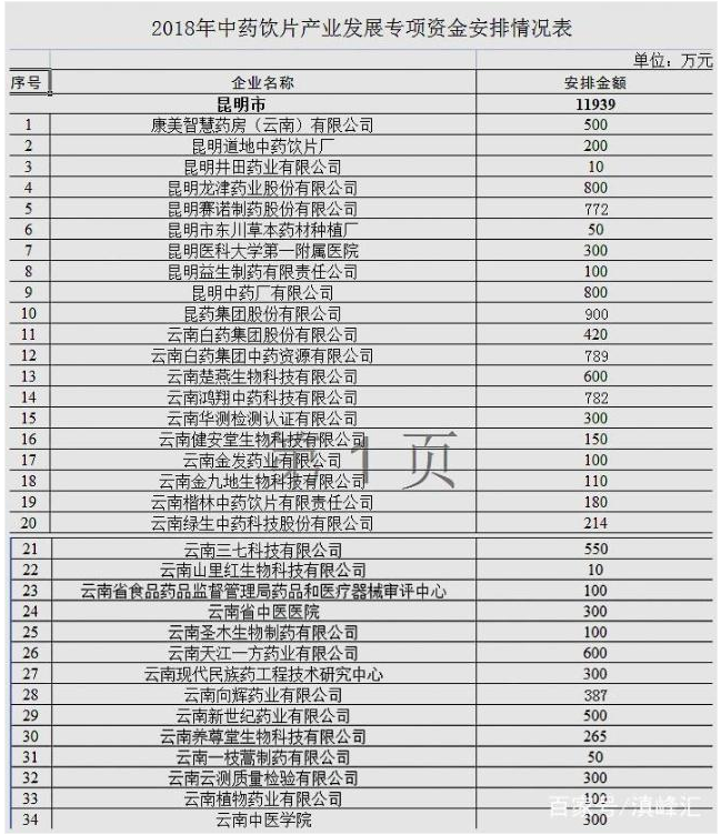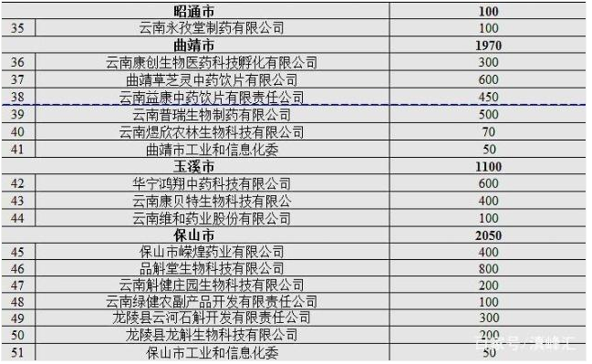 云南工信厅表示,按照《云南省人民政府关于推进中药饮片产业发展的若干意见》(云政发〔2018〕19号)、《云南省中药饮片产业发展专项资金管理办法》(云工信食药〔2018〕185号)和《云南省工业和信息化委关于做好2018年云南省中药饮片产业发展专项资金申报组织工作的通知》(食药〔2018〕140号)要求,经县区和州市工业和信息化部门初审推荐、专家评审、网络公示、省政府审批等程序,2018年云南中药饮片产业发展专项资金安排情况进行公开。据《云南省人民政府关于推进中药饮片产业发展的若干意见》,2018—2020年,省人民政府每年统筹安排奖补专项资金5亿元,支持中药饮片产业重点领域发展和关键环节突破,引导社会资金投入。重点培育10—20户区域性中药饮片生产龙头企业,鼓励中药材一二三产业融合发展,到2020年,中药饮片全产业链经济总量比2016年翻一番,实现千亿元产值发展目标。