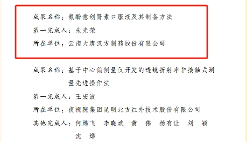 其中,《氨酚愈创肾素口服液及其制备方法》获评云南省第五届职工创新成果十佳先进操作 (工作)法;