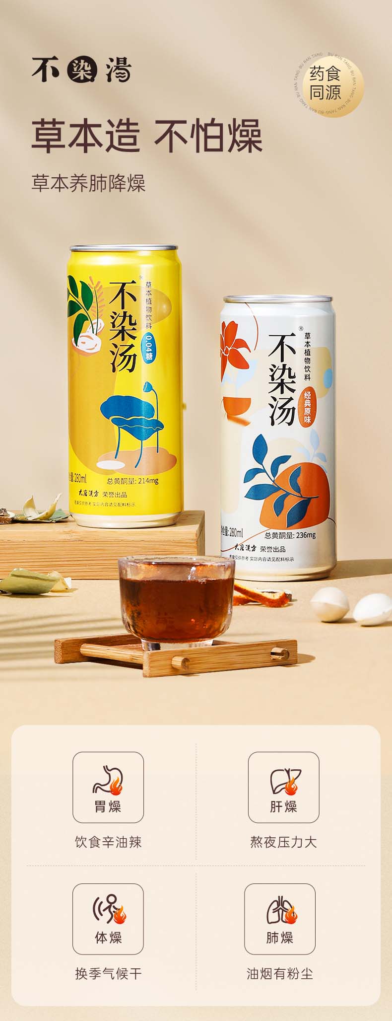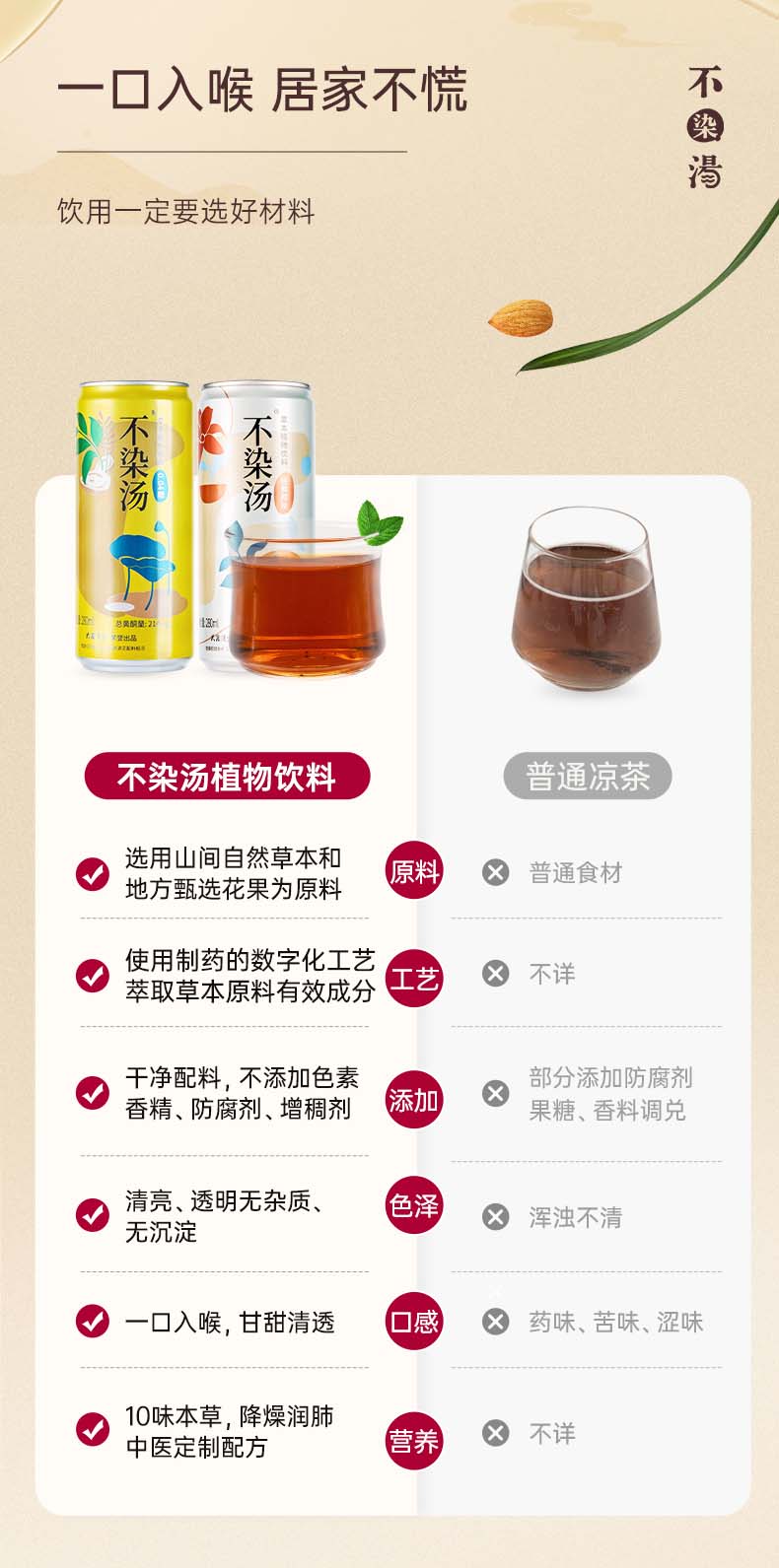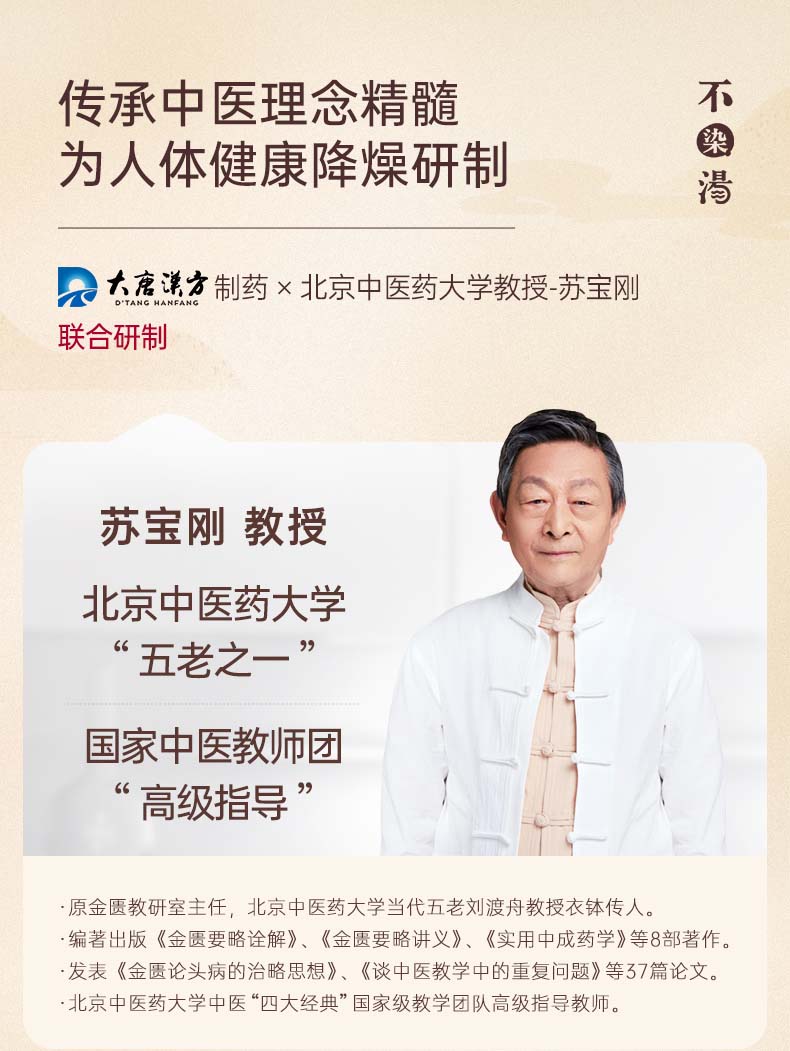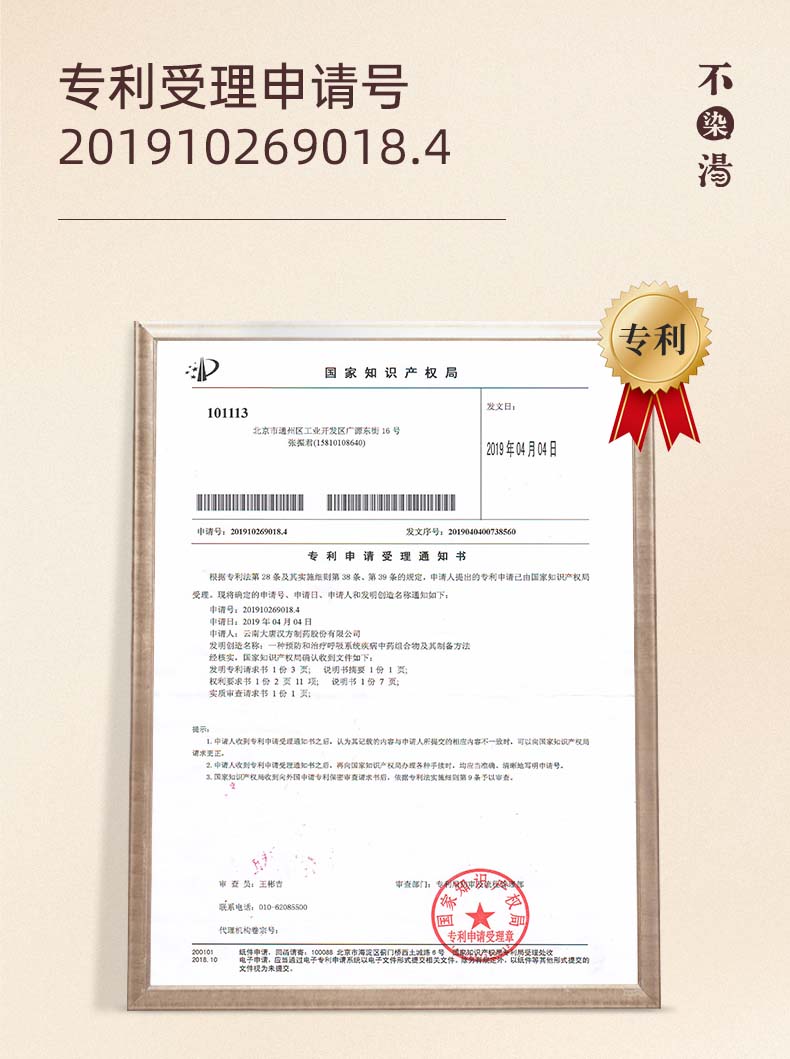 公司和北京中医大学联合开发的药食同源的绿色大健康饮品《不染汤》,是中国首创的具有较强清肺润肺功效的健康功能食品,获2020年中国饮料行业创新大奖。精选药食两用的10味植物原料,以科学组方而制,现代加工技术而成,符合国际绿色食品行业标准。经常饮用,可养肺阴、润肺脏,清滑热粘之痰,寒结之痰,理郁闷之气,升胃气以养肺保肺脏清肃。在新冠疫情期间向云南支援湖北武汉,咸宁医疗队及其家属捐赠7500件,价值118万元;向普洱市值守边境一线的强边固防突击队捐赠2900件,价值30.1万元。