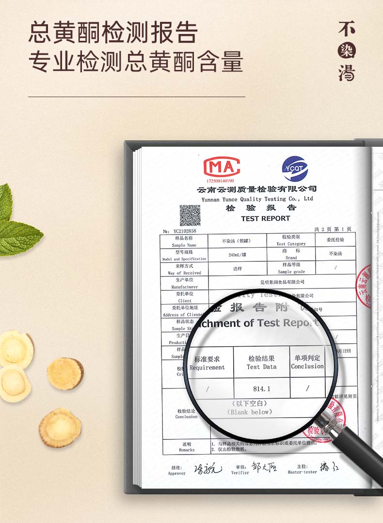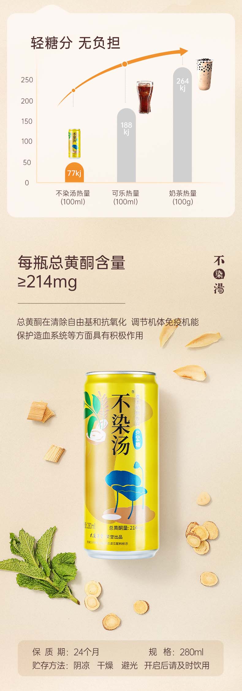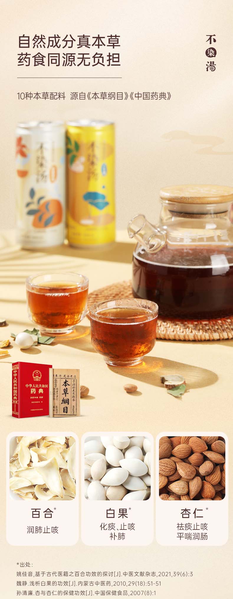公司和北京中医大学联合开发的药食同源的绿色大健康饮品《不染汤》,是中国首创的具有较强清肺润肺功效的健康功能食品,获2020年中国饮料行业创新大奖。精选药食两用的10味植物原料,以科学组方而制,现代加工技术而成,符合国际绿色食品行业标准。经常饮用,可养肺阴、润肺脏,清滑热粘之痰,寒结之痰,理郁闷之气,升胃气以养肺保肺脏清肃。在新冠疫情期间向云南支援湖北武汉,咸宁医疗队及其家属捐赠7500件,价值118万元;向普洱市值守边境一线的强边固防突击队捐赠2900件,价值30.1万元。